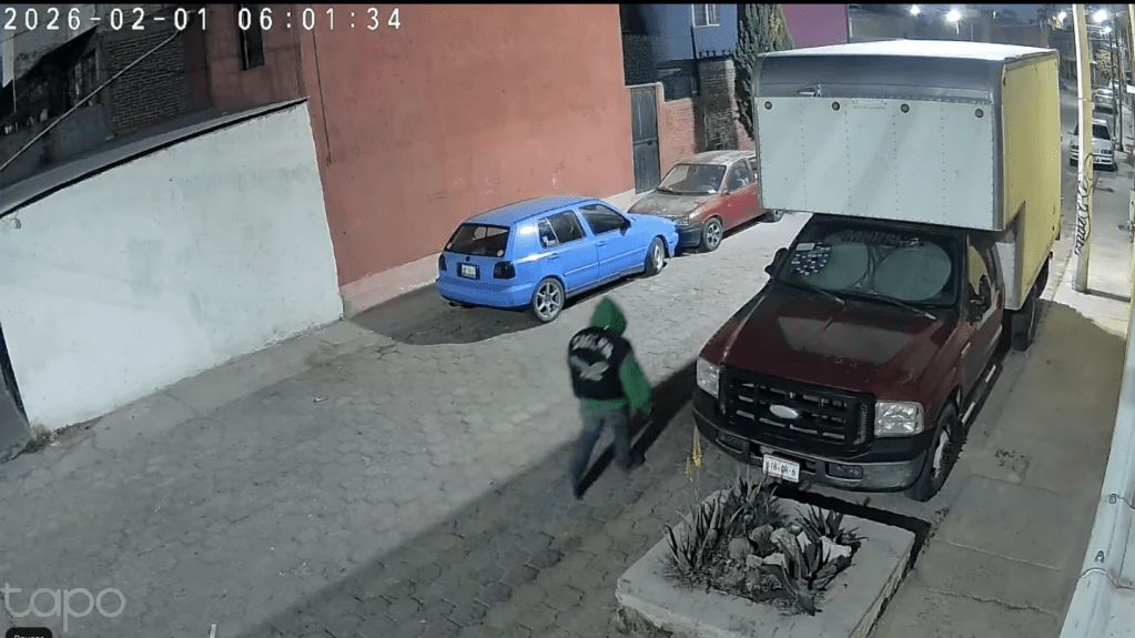 Los hechos fueron registrados a las seis de la mañana, del domingo 1 de febrero de 2026. Una cámara de videovigilancia capta a un hombre caminando por la calle, cerca de los autos, mientras con un objeto pincha un neumático.